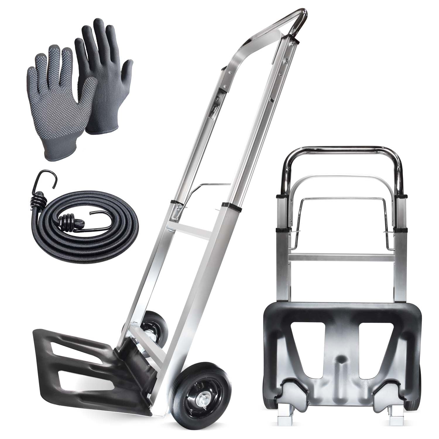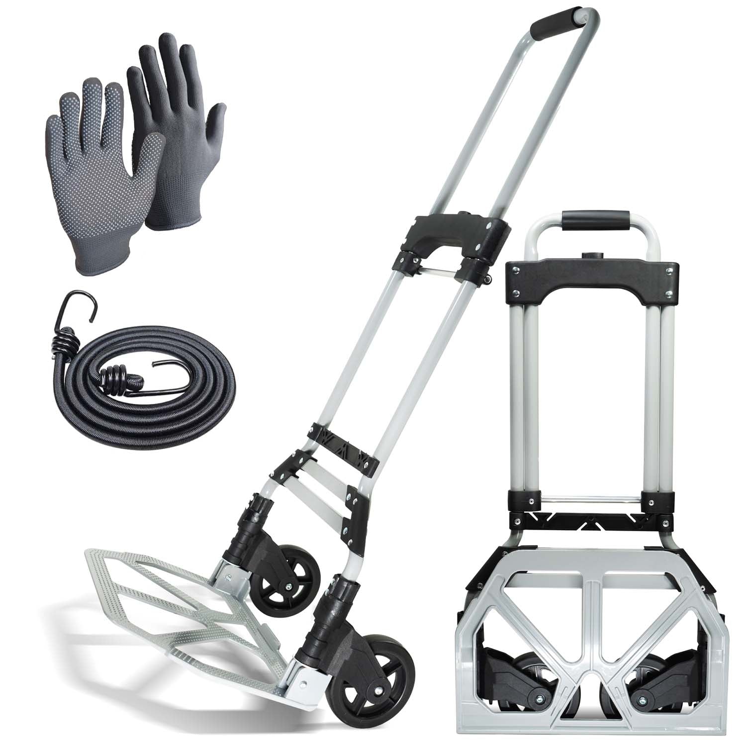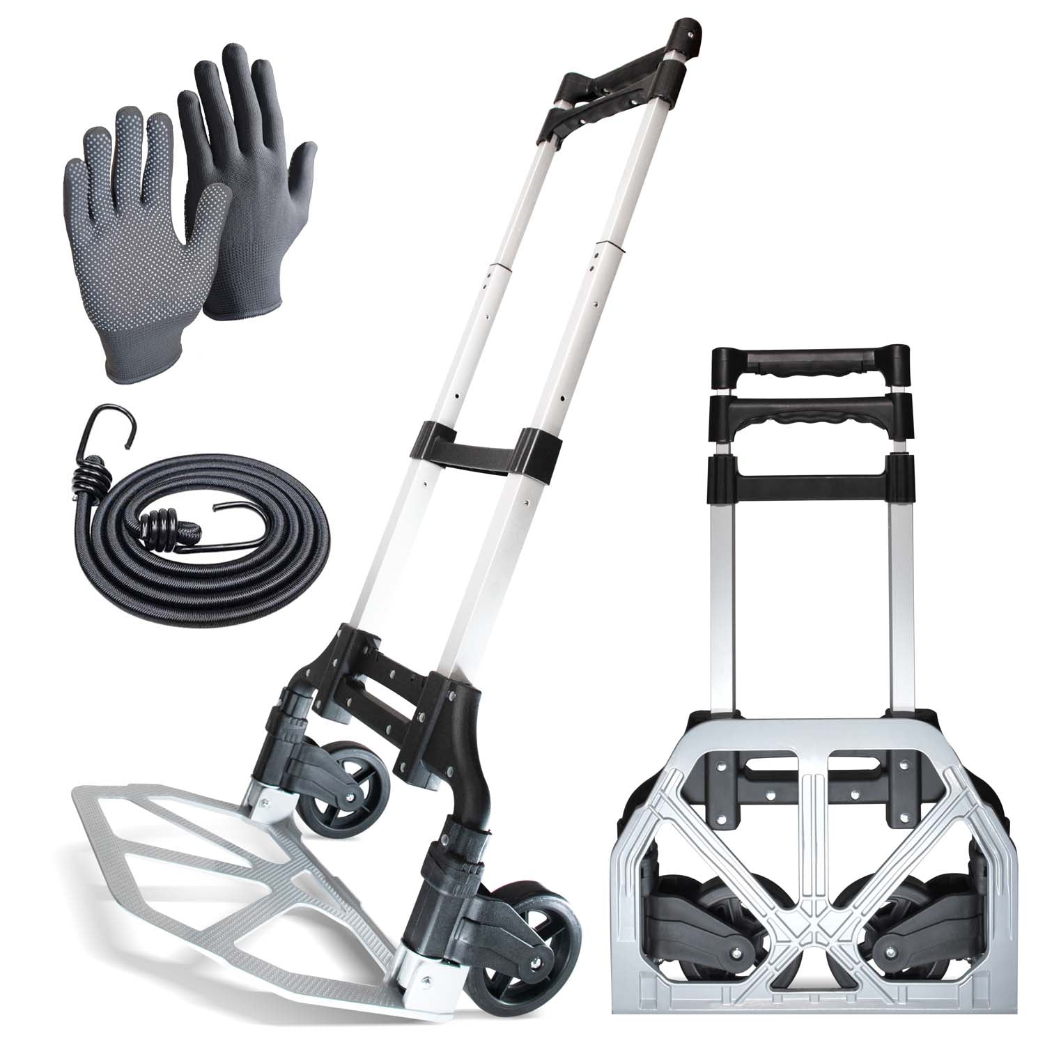 This easy-to-use hand truck features a simple design and adjustable handle for optimal comfort and control. After use, it effortlessly folds into a flat size, ensuring convenient storage in tight spaces. As a bonus, we include two valuable gifts: a bungee cord for secure item fastening and a pair of safety gloves for hand protection during your moving tasks.